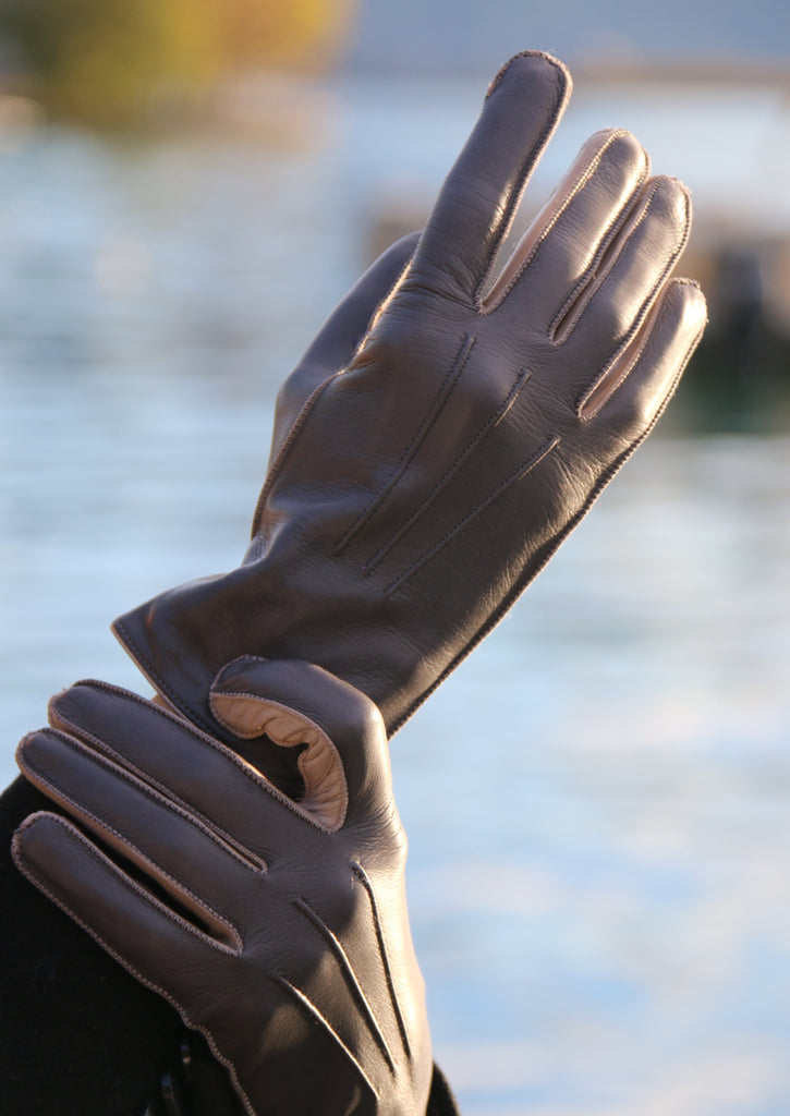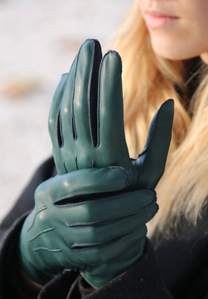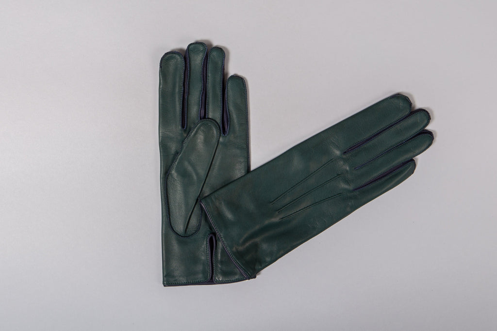 Women's glove in lambskin or pecarized kidskin, lined with silk.