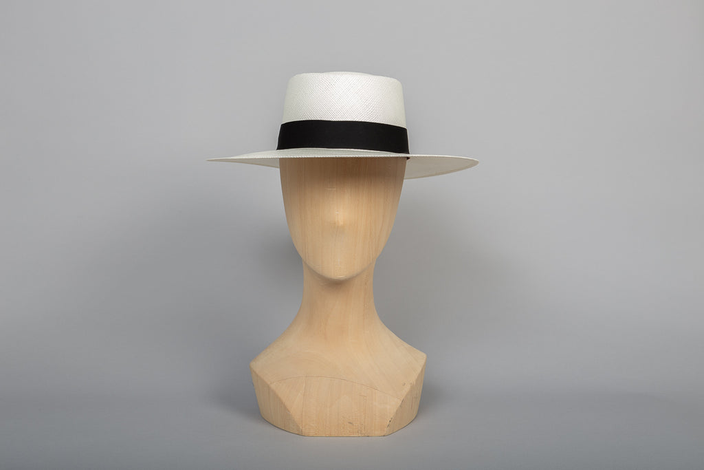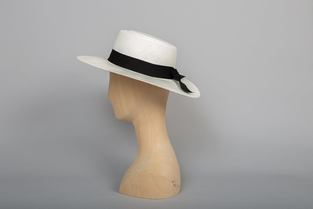 Wide-brimmed panama hat, ultra feminine thanks to its bow with falling sides.