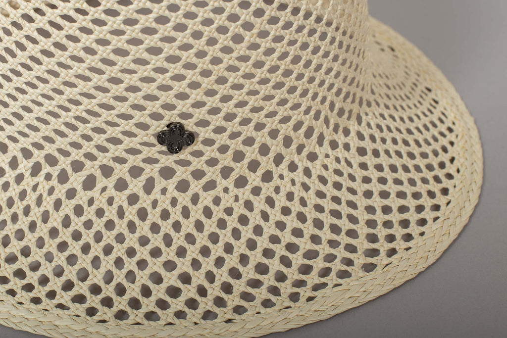 Shaped like a small bucket, it is openwork over the entire hat.