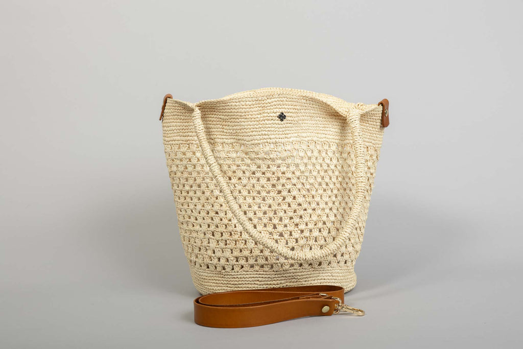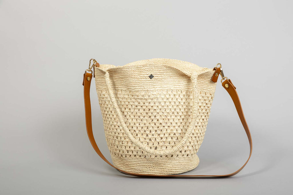 Sac tressé à la main, en fibre de panama crochet et sa anse en cuir, le Bolso sera le petit plus de votre tenue d’été.